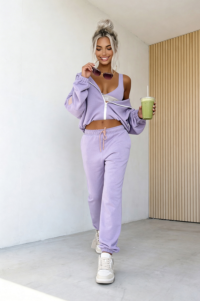 <p><strong>3-częściowy komplet</strong>, który łączy wygodę z nowoczesnym stylem. W jego skład wchodzi <strong>bluza z zamkiem i kapturem</strong>,<strong> spodnie z elastyczną talią</strong> oraz dopasowany <strong>top</strong>, tworząc spójną i funkcjonalną całość. Idealny wybór na co dzień – zapewnia komfort noszenia, swobodę ruchów i modny wygląd bez wysiłku.</p>