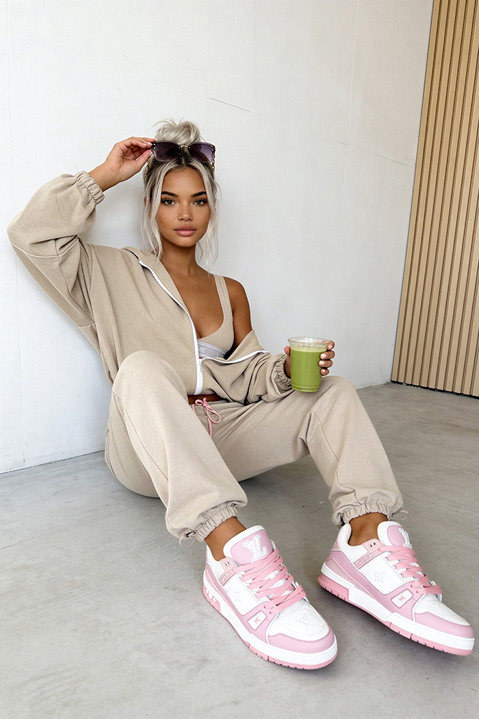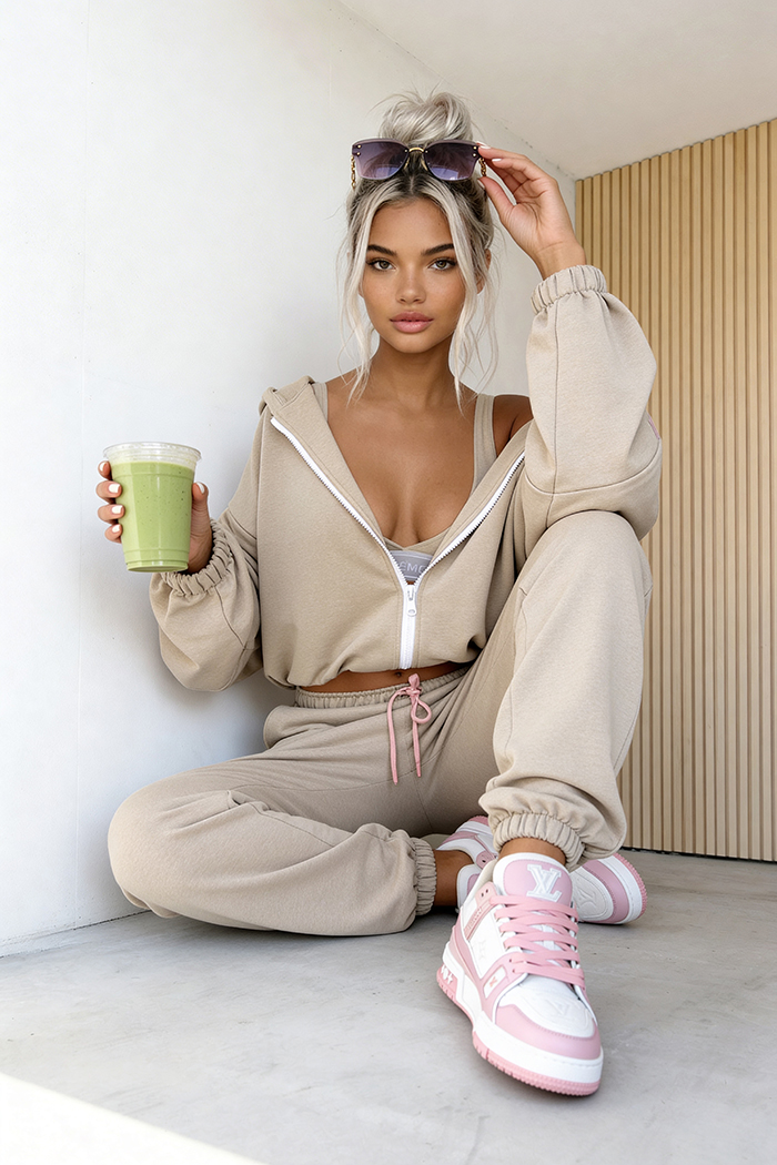 3-częściowy komplet, który łączy wygodę z nowoczesnym stylem. W jego skład wchodzi bluza z zamkiem i kapturem, spodnie z elastyczną talią oraz dopasowany top, tworząc spójną i funkcjonalną całość. Idealny wybór na co dzień – zapewnia komfort noszenia, swobodę ruchów i modny wygląd bez wysiłku.