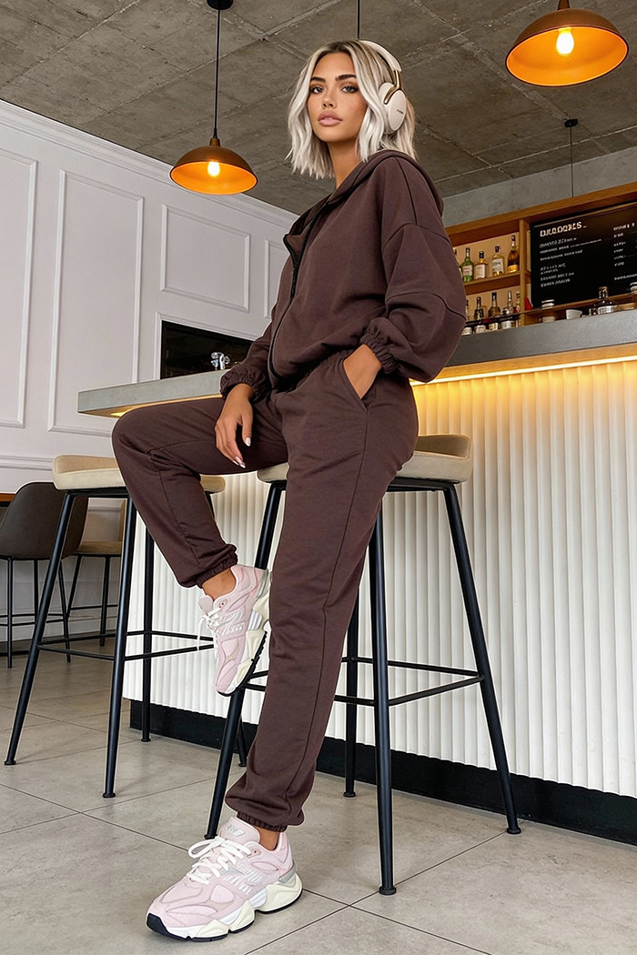 Komplet dresowy Gloria, bluza i spodnie mocca
