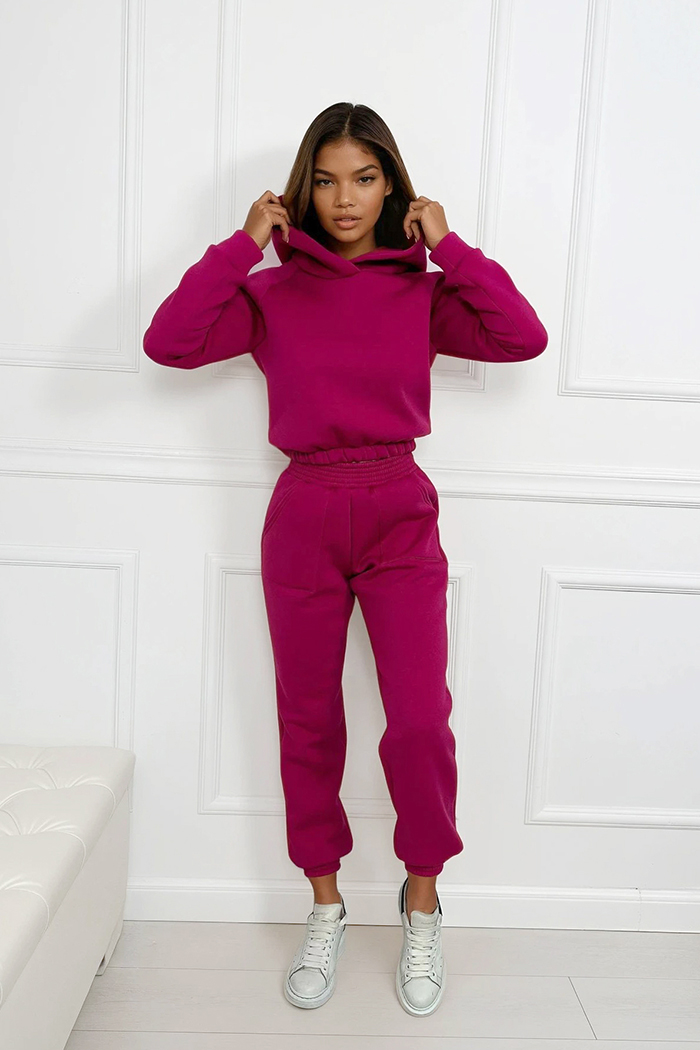To kwintesencja kompletu dresowego- wykonany z wysokogatunkowej dzianiny dresowej. Materiał z „misiem” – miękki, przyjemny i ciepły. Luźny, swobodny fason, lecz nie oversize!