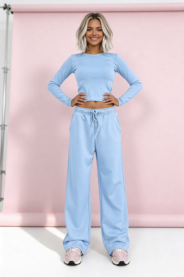 Jestem zachwycona tym materiałem. Komplet wygląda niezwykle elegancko, a czuje się w nim jak w mięciutkiej pidżamie. Obawiałam się że spodnie mają niski stan, bo na wszystkich zdjęciach modelka ma opuszczone, ale mają wysoki i można regulować pas wiązaniem. Jest świetny na pewno kupię jeszcze jakiś kolor.