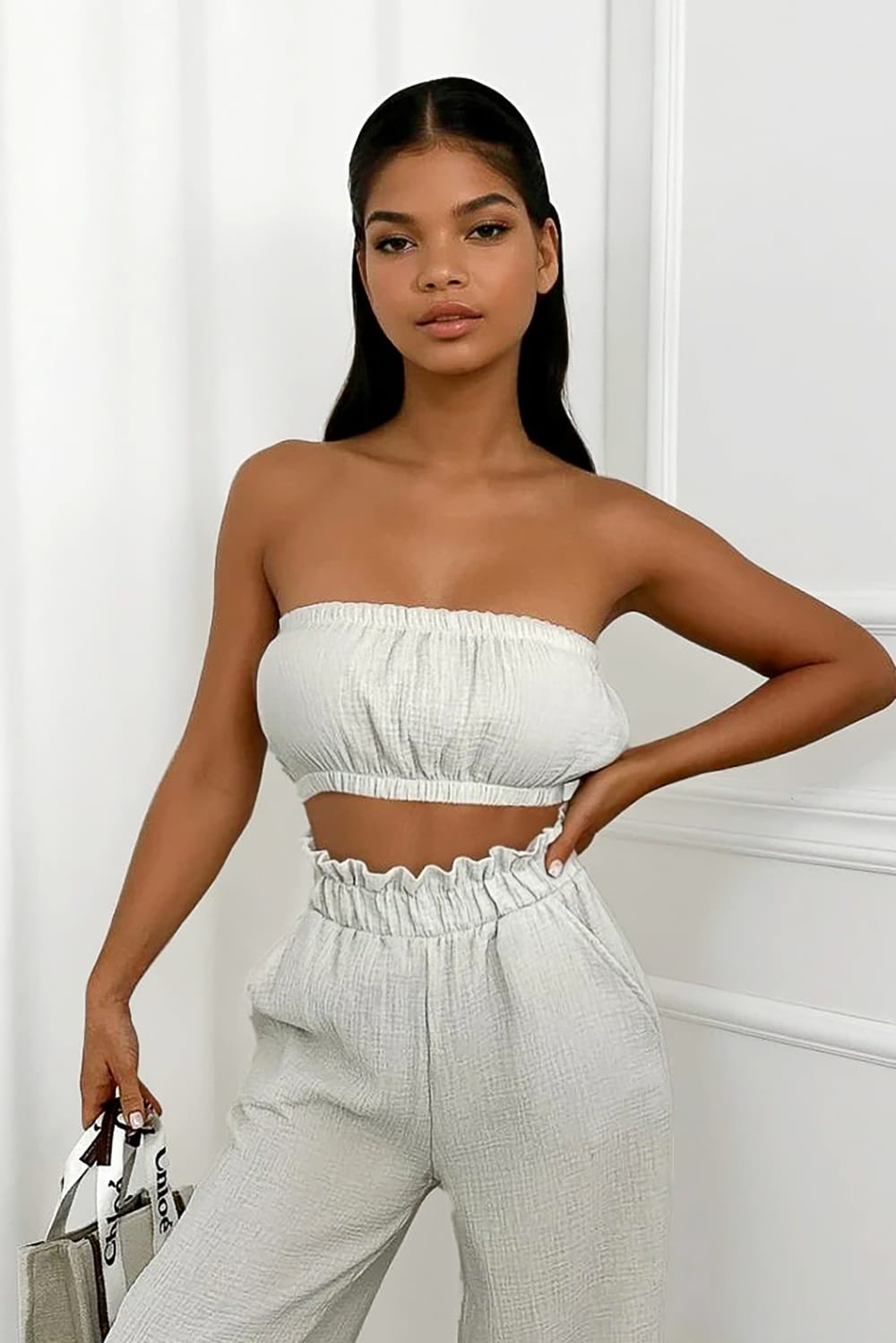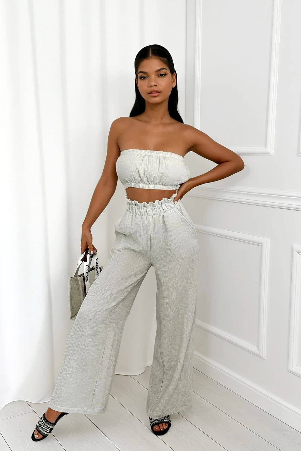 Muślinowy komplet – top bandeau + szerokie spodnie