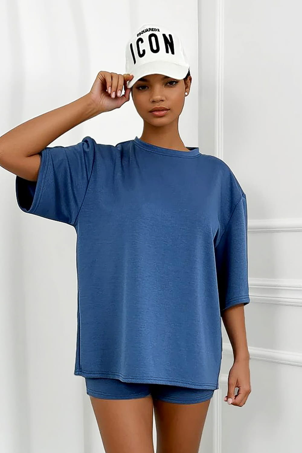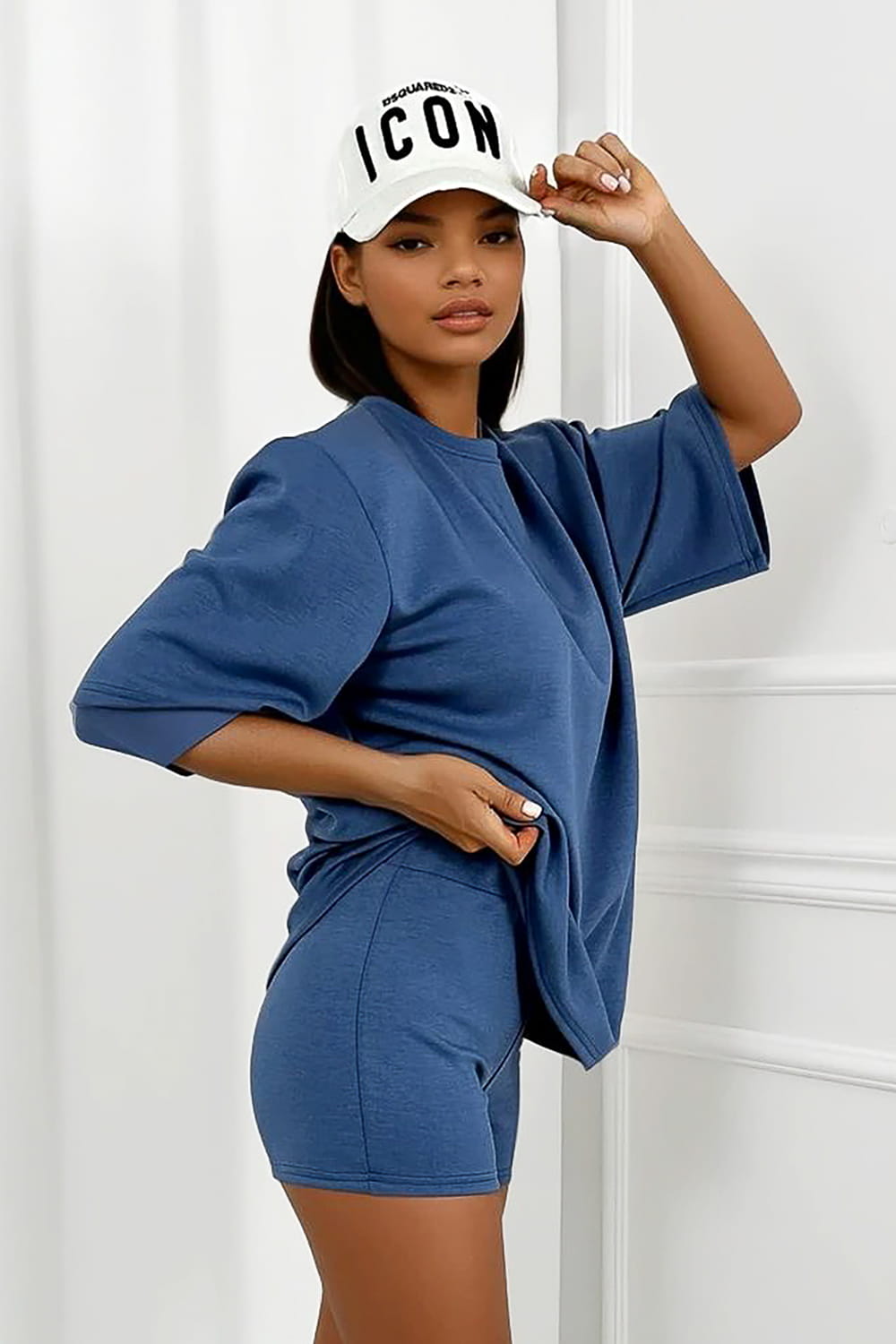 Stworzony z wyjątkowo miękkiego i delikatnego materiału. Składa się z dopasowanych krótkich spodenek oraz oversize’owej bluzki. Lekko sportowy, ale wciąż stylowy look – idealny na spacer, wyjazd czy codzienne wyjście w upalne dni.