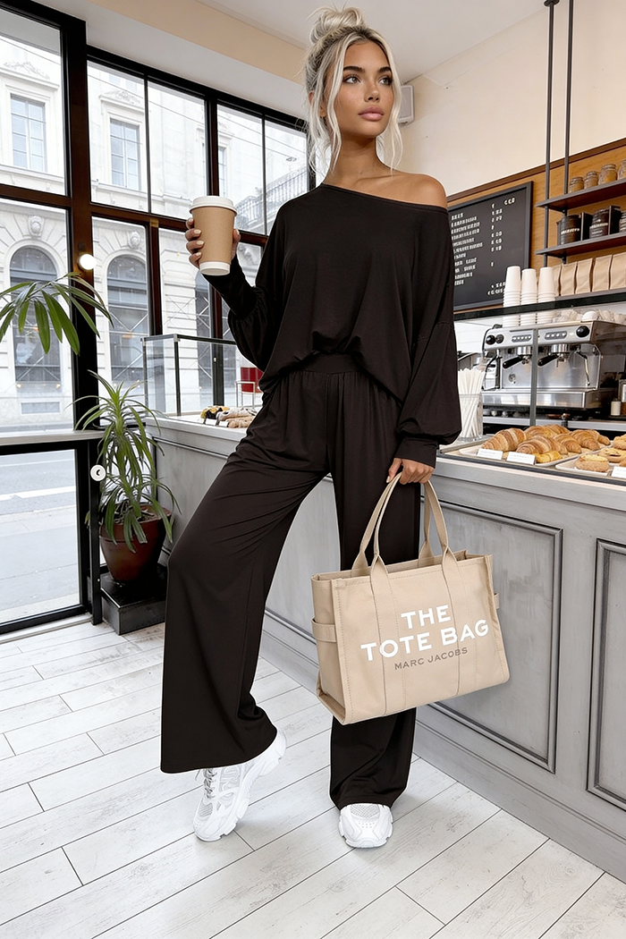 Komplet w 95% z naturalnej wiskozy? Poznaj nasz bestseller! Set Aurelia to komplet wykonany aż w 95% z przewiewnej wiskozy. Luźne spodnie z wysokim stanem zakończone szeroką - nieuciskającą gumką + luźna bluzka typu komino zakończona ściągaczami.