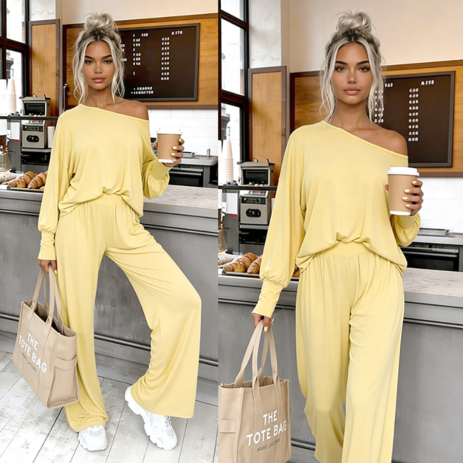 Komplet w 95% z naturalnej wiskozy? Poznaj nasz bestseller! Set Aurelia to komplet wykonany aż w 95% z przewiewnej wiskozy. Luźne spodnie z wysokim stanem zakończone szeroką - nieuciskającą gumką + luźna bluzka typu komino zakończona ściągaczami.