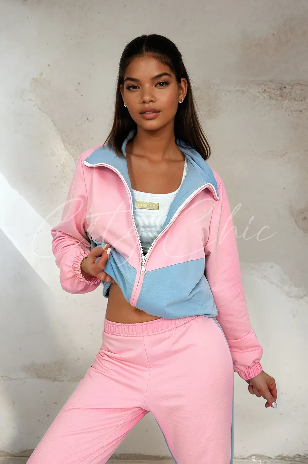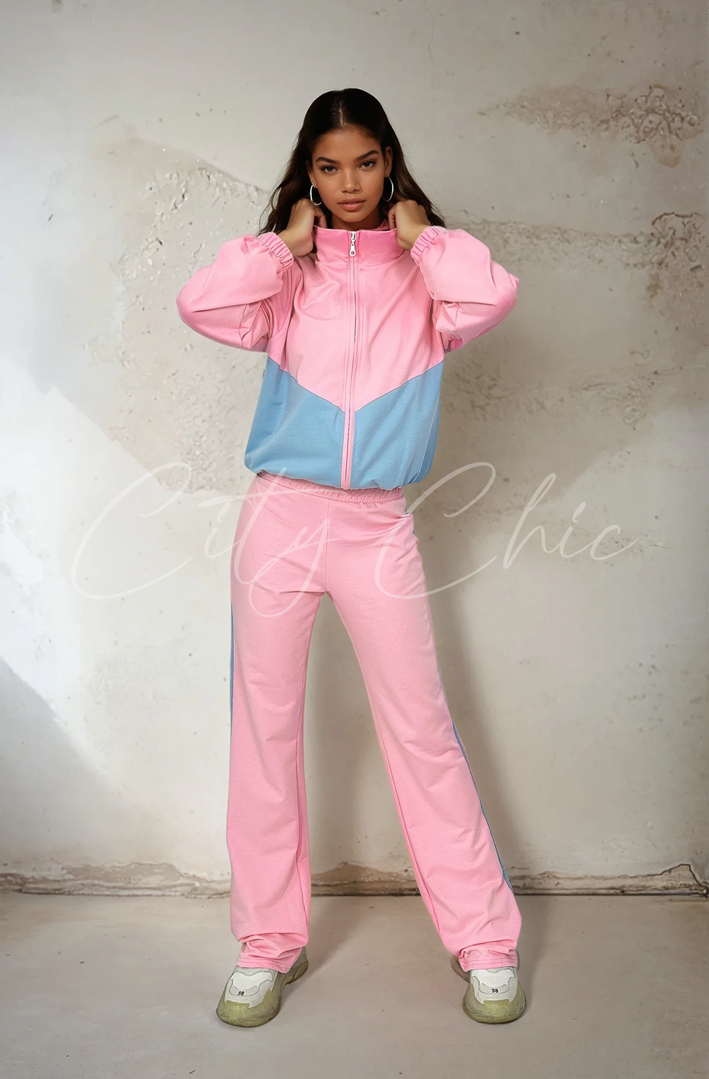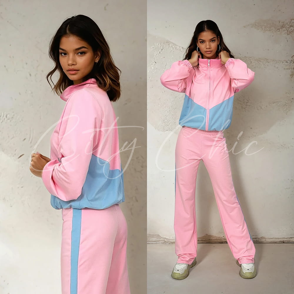 Baw się modą z naszym dwukolorowym zestawem dresowym! Połączenie kontrastujących barw – bluza na gumce ze stójką i spodnie dresowe o prostym kroju – to hit wiosny! Komfortowy materiał bawełniany i modny design, który łączy wygodę z odrobiną szaleństwa. Idealny wybór na co dzień, gdy chcesz wyróżniać się z tłumu!