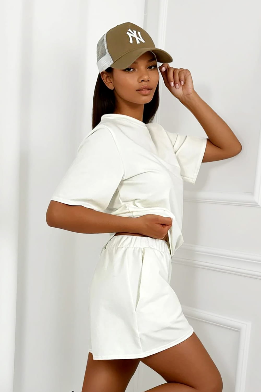 Wygodna bluzka w kroju oversize i krótkie spodenki tworzą idealny zestaw na lato. Uszyty z przewiewnej, bawełnianej dzianiny – zapewnia maksymalny komfort i swobodę ruchu. Sportowy, luźny look, który sprawdzi się zarówno na co dzień, jak i w podróży.