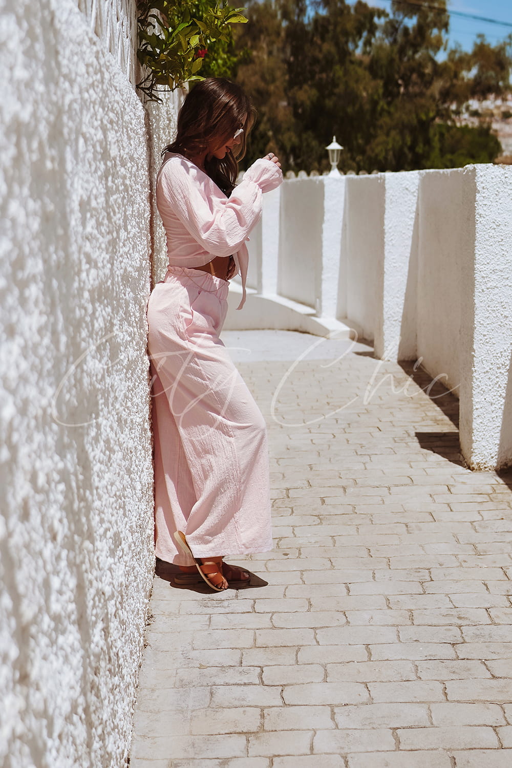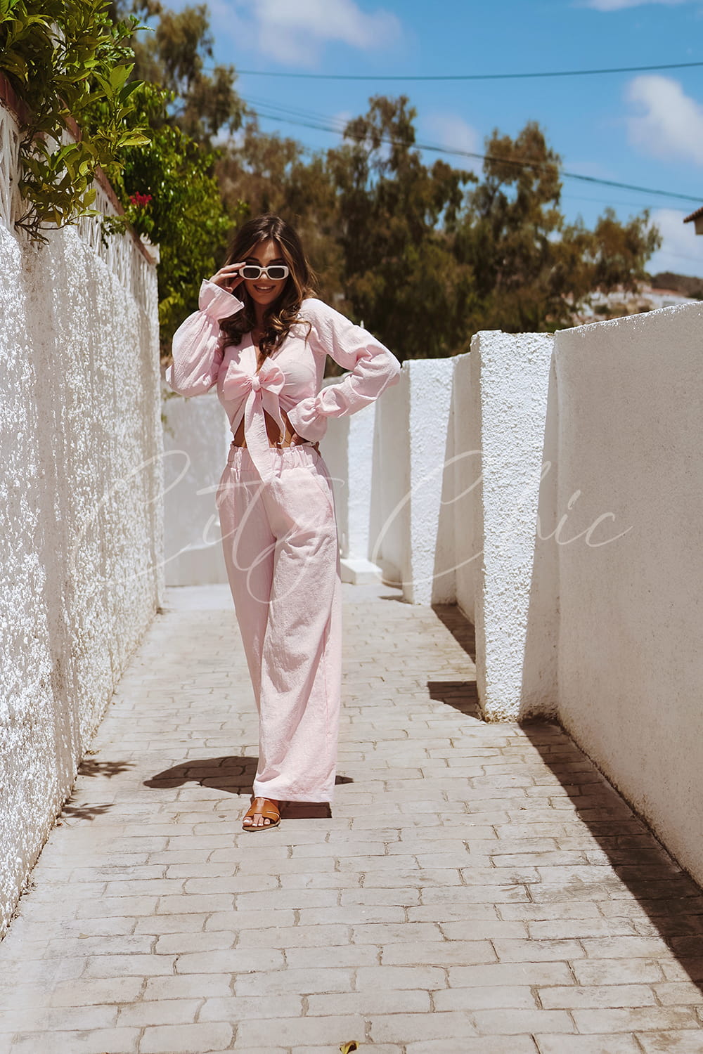 Odkryj letni komfort w naszym zestawie! Długie spodnie z luźną, szeroką nogawką zapewniającą wygodę w upały oraz bluzka z długimi rękawami, wiązana w pasie. Wykonane z idealnego materiału na lato. Nasz zestaw zapewni Ci maksymalny komfort nawet w najgorętsze dni!